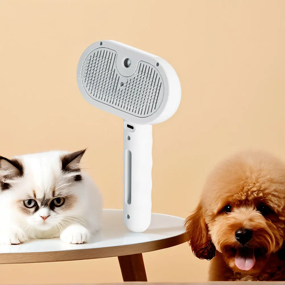 Introducing the pet steam brush, a versatile grooming tool designed to keep your furry friends looking their best. With a humanized design featuring a compact and ergonomic handle, this brush is comfortable to use and easy to control with its one-touch spray function. The pet-safe materials include a soft silicon tooth comb and a brush head made of ABS+TPR, ensuring a gentle grooming experience that won't harm your pet's skin.